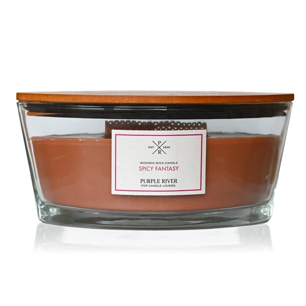 Scented candle with wooden wick Purple River Ellipse 453 g - Spicy Fantasy