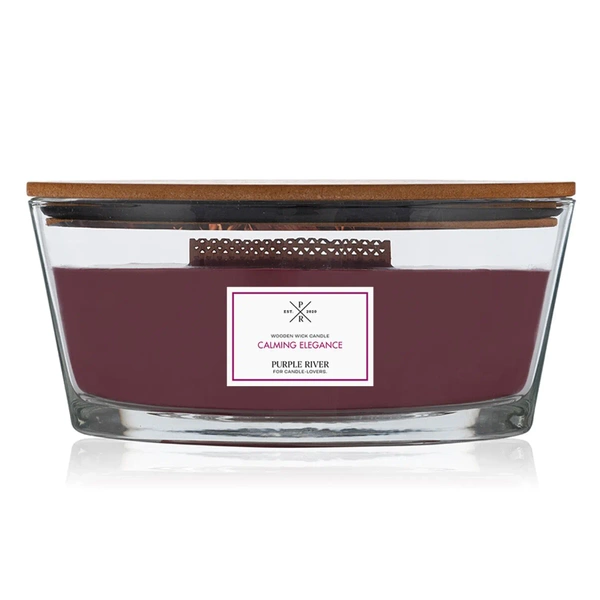 Scented candle with wooden wick Purple River Ellipse 453 g - Calming Elegance