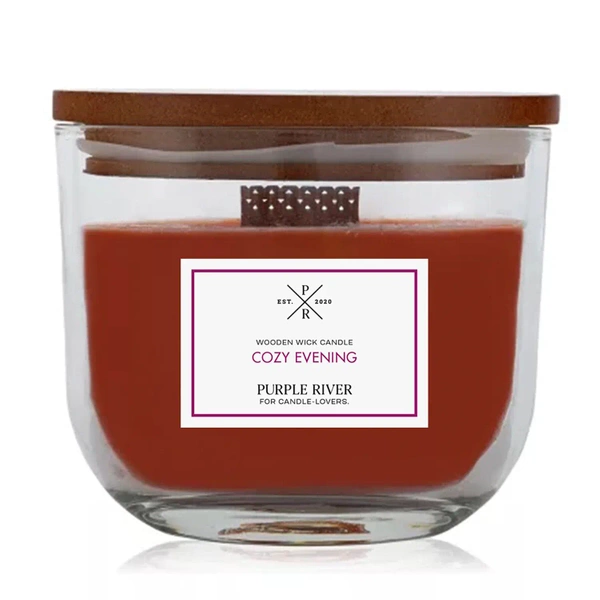 Purple River Oval Classic scented candle with wooden wick 370 g - Cozy Evening